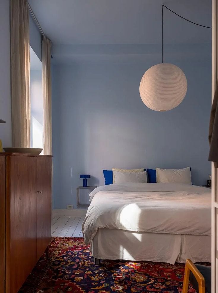 The dream guest room is small - smaller than a New York hotel room - but actually, truly, cozy, and not in the way a closet apartment is described as “cozy” on StreetEasy. The sheets are crisp white linen. A single flower - maybe a Bear Creek dahlia - sits in a bud vase on the nightstand. There’s a big wardrobe to put your suitcase and a carafe of still water.